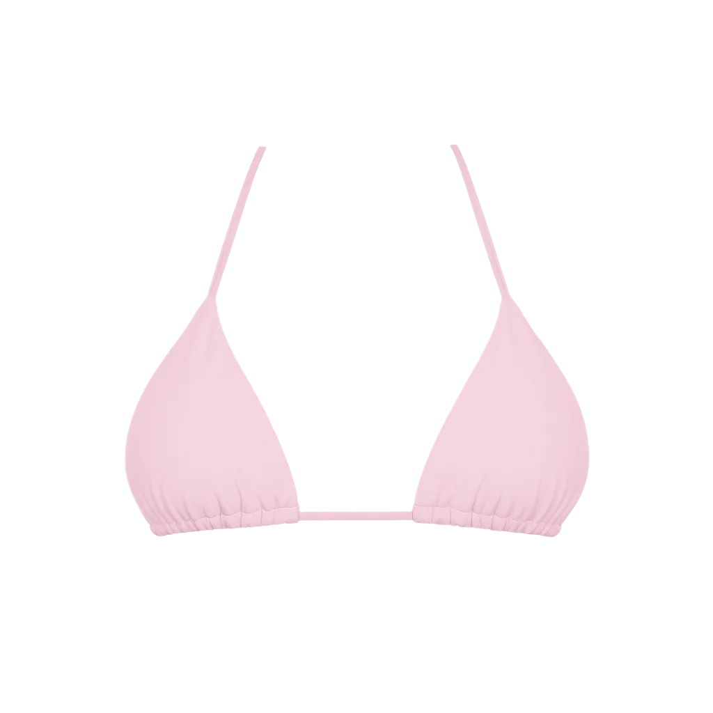 Baby pink triangle top with adjustable ties on both the neck and back.