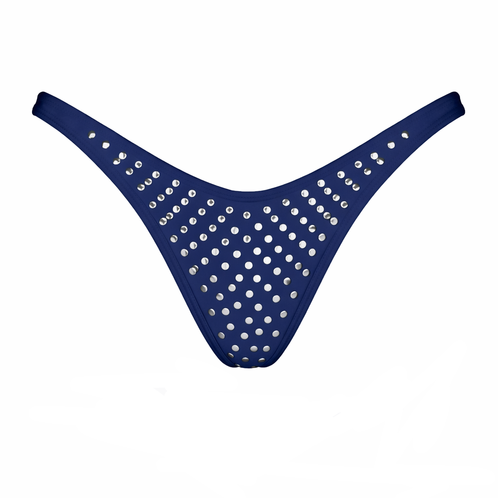 Flattering navy silver studded cheeky bikini bottoms. Runs true to size.